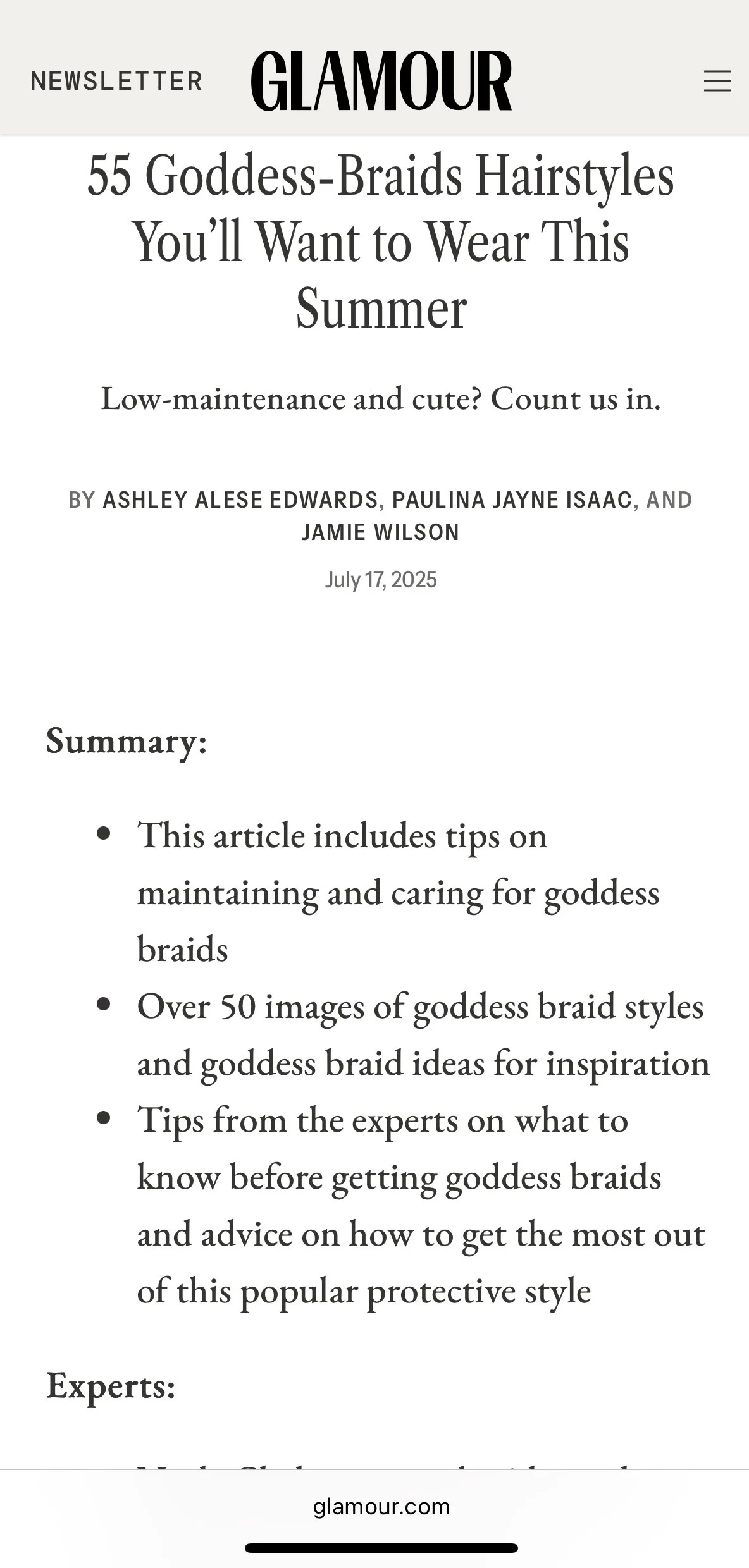 “Goddess braids are my favorite protective style,” says Vanessa Ocando, celebrity hairstylist. “I love the softness and whimsical feel.” This relaxed vibe is achieved through braids with curly or wavy hair added throughout or toward the ends to create a softer, perfectly imperfect appearance.